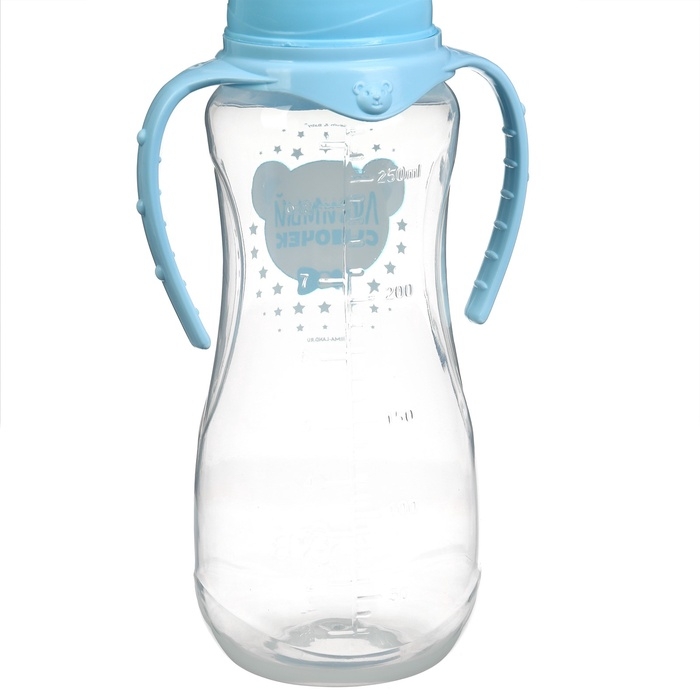Бутылочка для кормления «Любимый сыночек», классическое горло, приталенная, с ручками, 250 мл., от 0 мес., цвет голубой