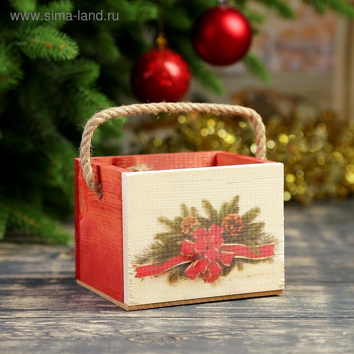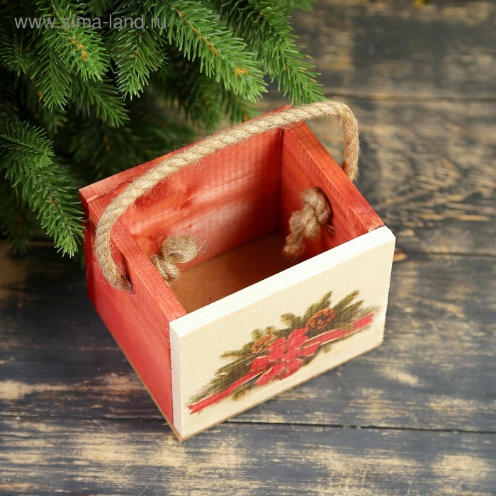 Кашпо деревянное "Ёлочная гирлянда", ручка- шнур, 12,5х10,5х9,5см
