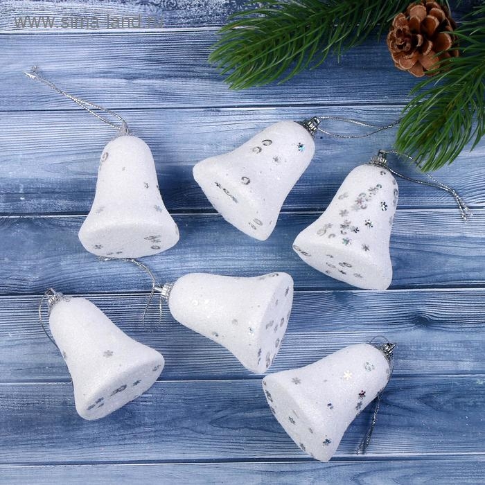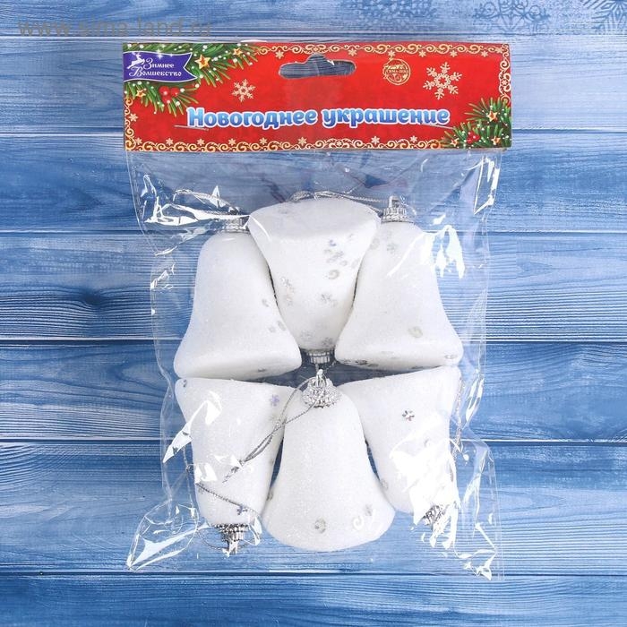 Ёлочные игрушки 6 шт. «Зимнее волшебство. Колокольчики со звёздочками» пластик, 4,5х5,3 см, белый