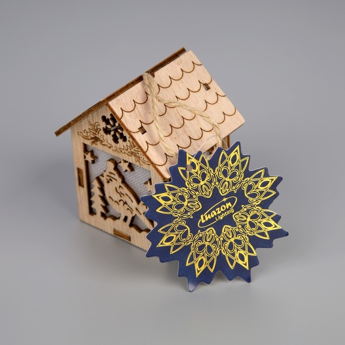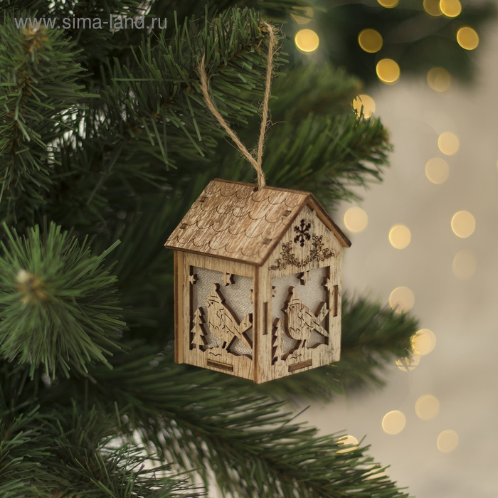 Ёлочная игрушка «Домик с птицей», от батареек, свечение тёплое белое