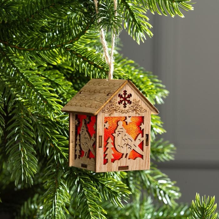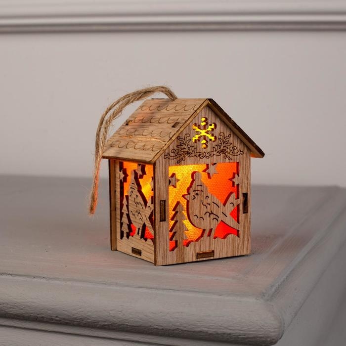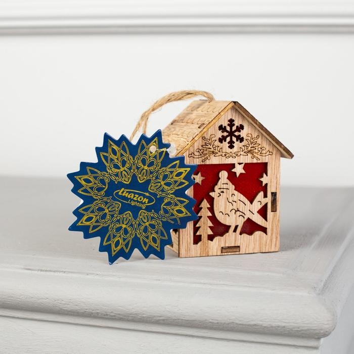 Ёлочная игрушка «Домик с птицей», от батареек, свечение тёплое белое