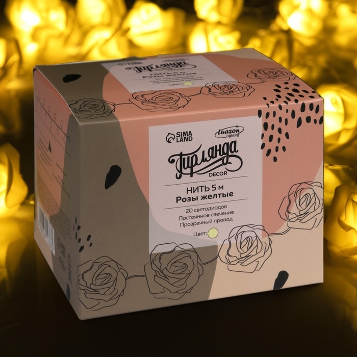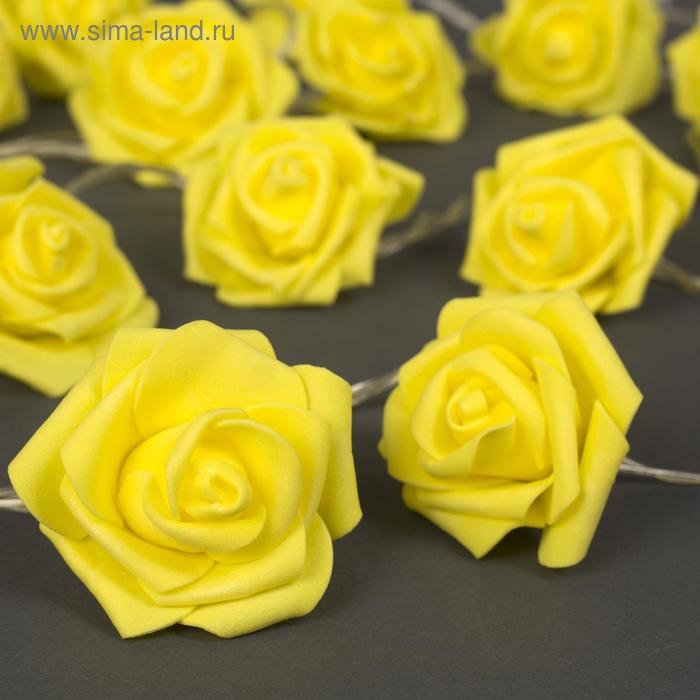 Гирлянда «Нить» 5 м с насадками «Розы жёлтые», IP20, прозрачная нить, 20 LED, свечение тёплое белое, 220 В