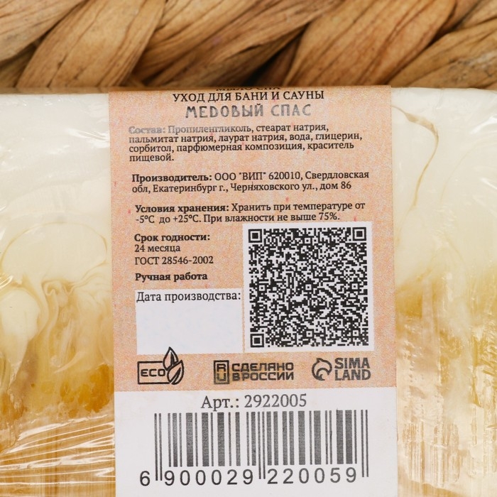Мыло СПА - уход для бани и сауны "Медовый спас" Добропаровъ РУЧНАЯ РАБОТА 80 гр