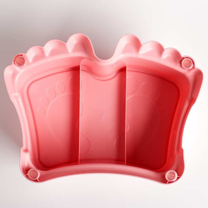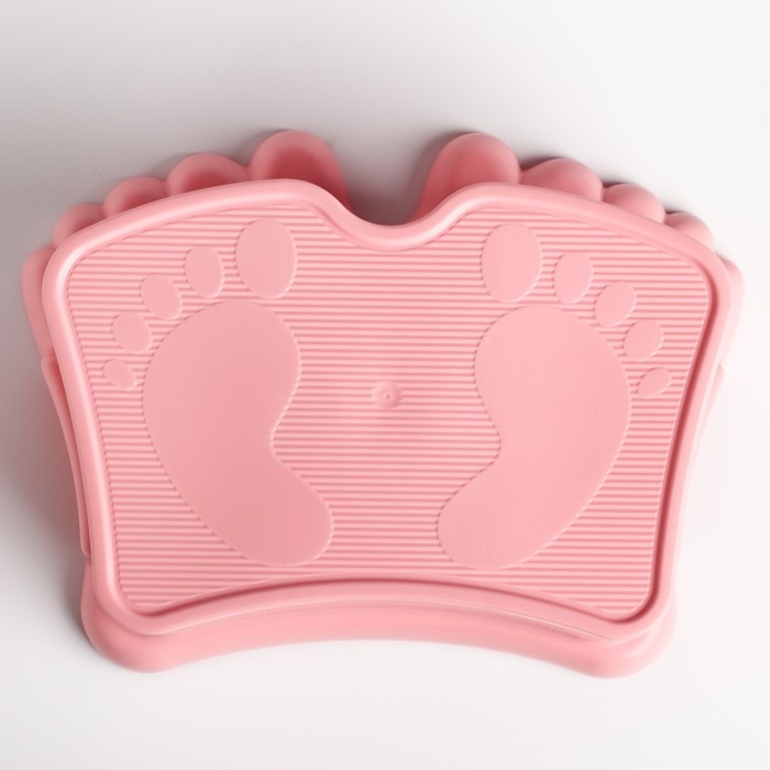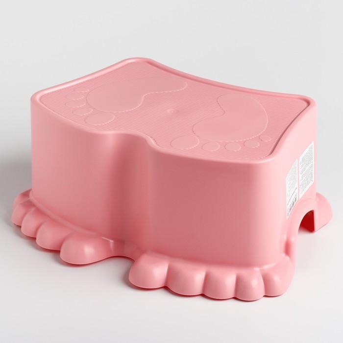 Рельефный узор в виде забавных пяточек, защитит ножки малыша от скольжения по поверхности табуретки-помощника.