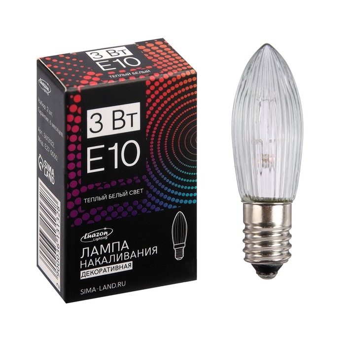 Лампа накаливания для рождественской горки, 3 Вт, цоколь Е10, теплый белый, 2 шт