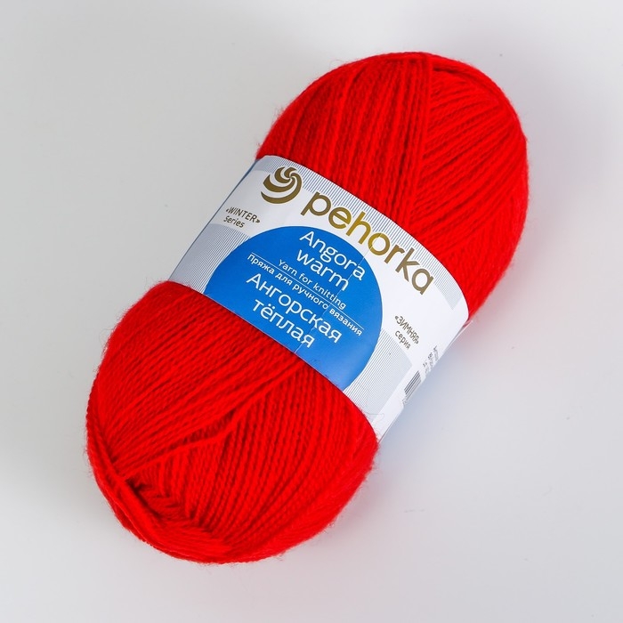 Пряжа "Ангорская тёплая" 40% шерсть, 60% акрил 480м/100гр (88 красный мак)
