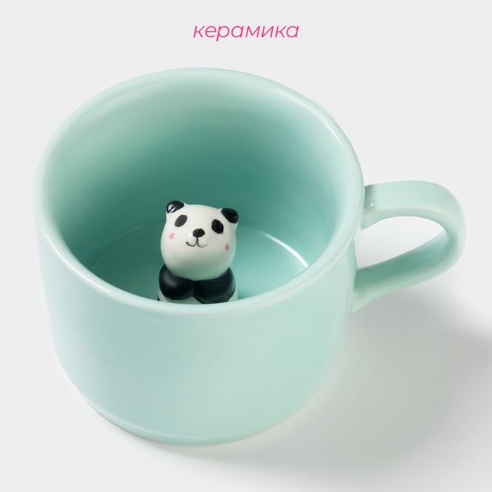 Кружка керамическая с фигуркой на дне «Зверята. Панда», 250 мл, 11,5×9×6,5 см, цвет бирюзовый