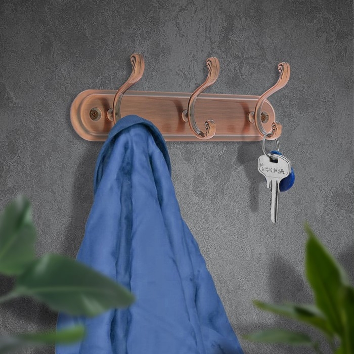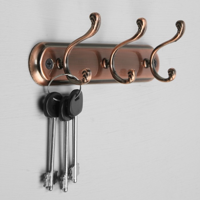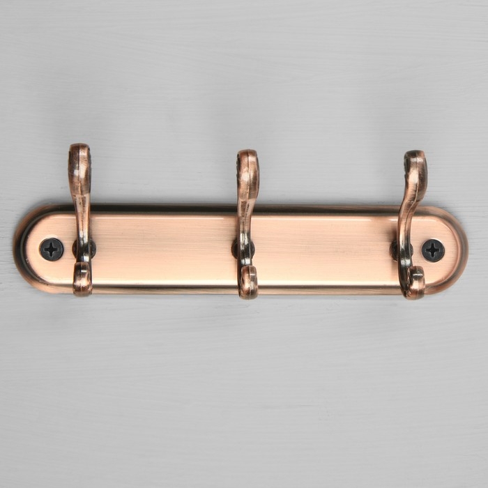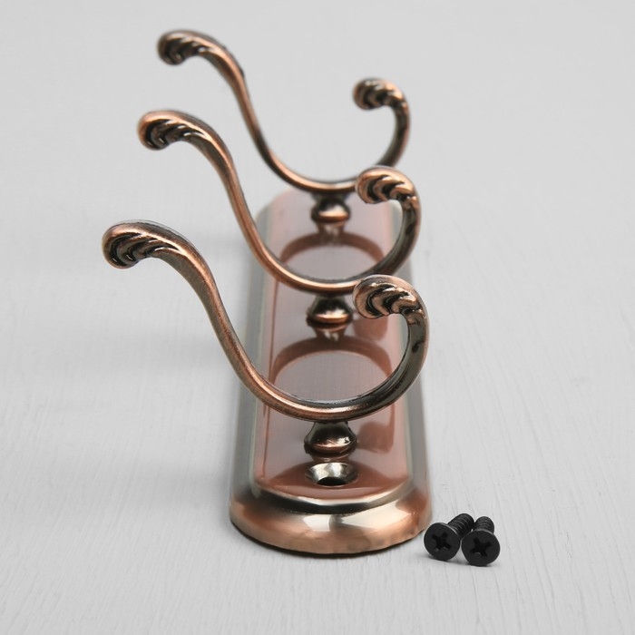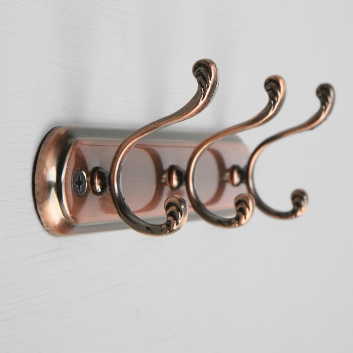 Вешалка ТУНДРА TVT003, металлическая, трёхрожковая, цвет медь