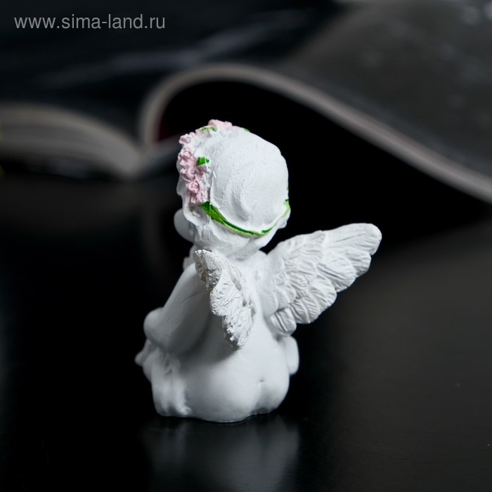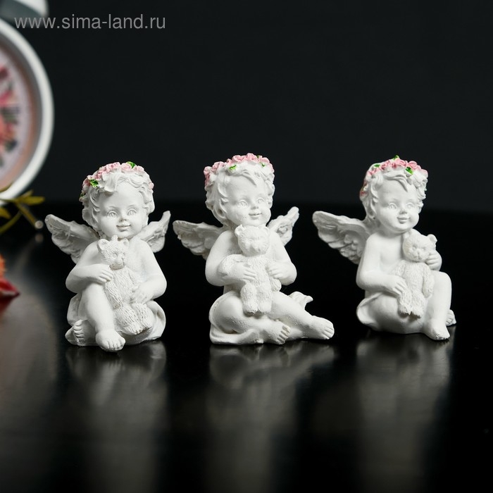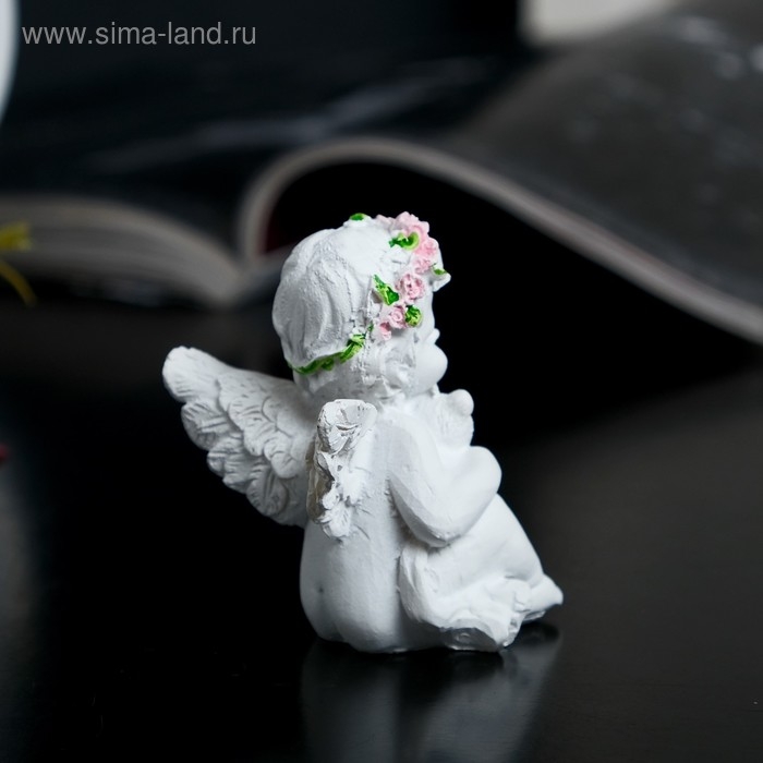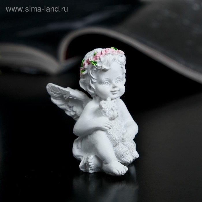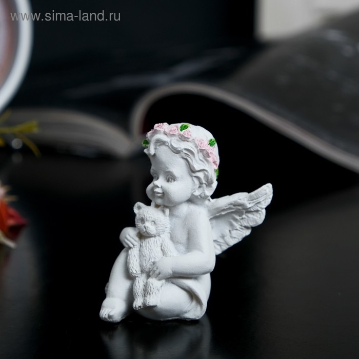 Сувенир полистоун "Ангел-карапуз в розовом венке с мишкой" МИКС 5,8х4,4х3,8 см