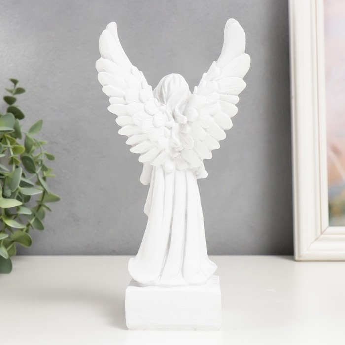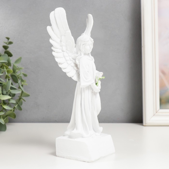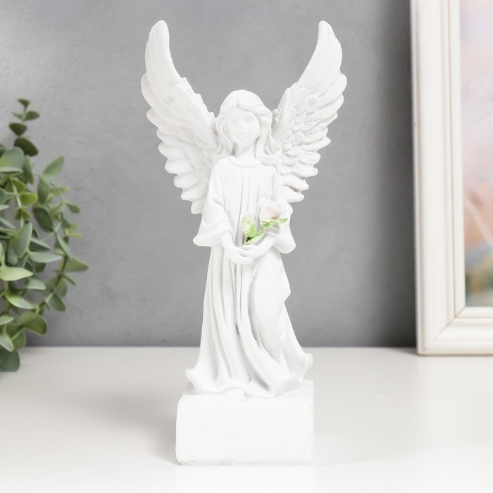 Сувенир полистоун "Белоснежный ангел-девушка в платье, с розой" 21х10,5х6,5 см