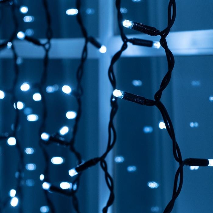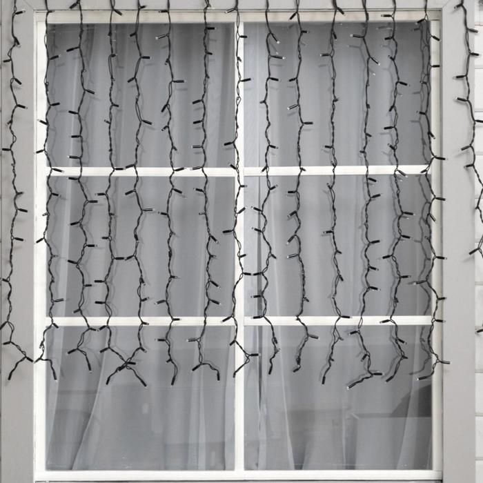 Гирлянда "Занавес" 2 х 1.5 м , IP65, УМС, тёмная нить каучук, 300 LED, свечение белое, 220 В