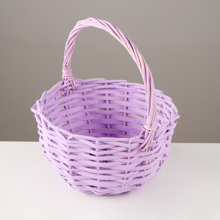 Корзина плетеная бамбук, D13xH9,5/28см, светло-розовая