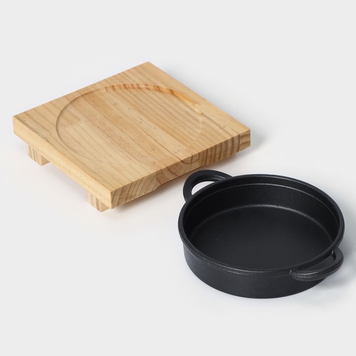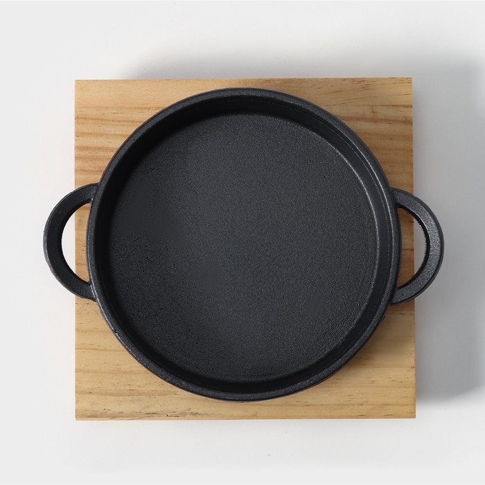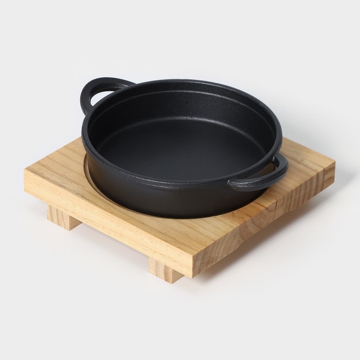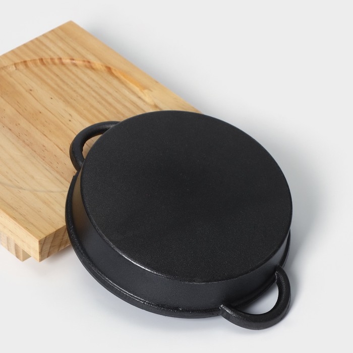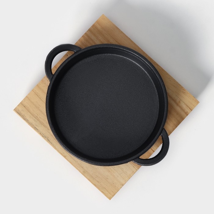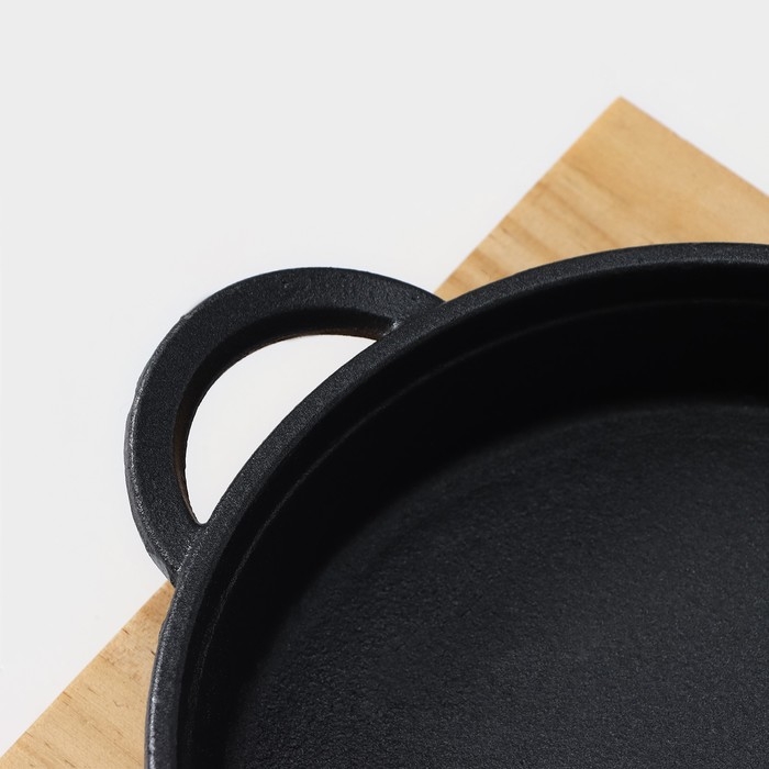 Сковорода чугунная «Круг высокий с ручками», d=18 см, на деревянной подставке
