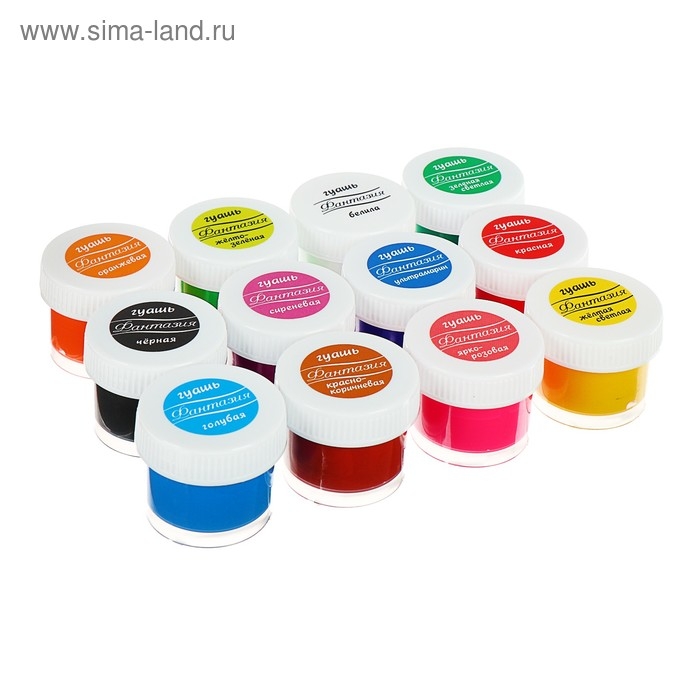 Гуашь 12 цветов х 15 мл "Фантазия", МИКС