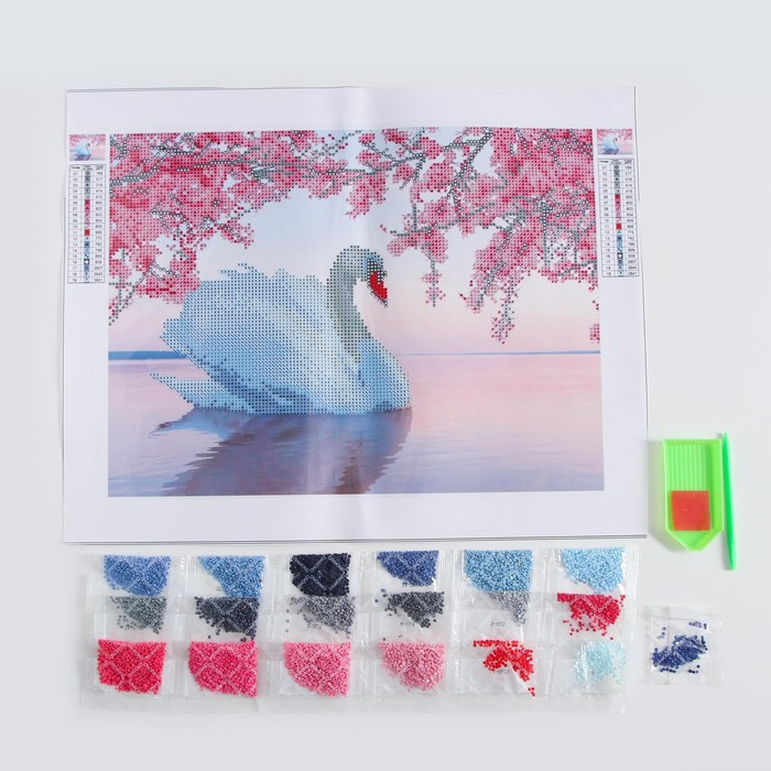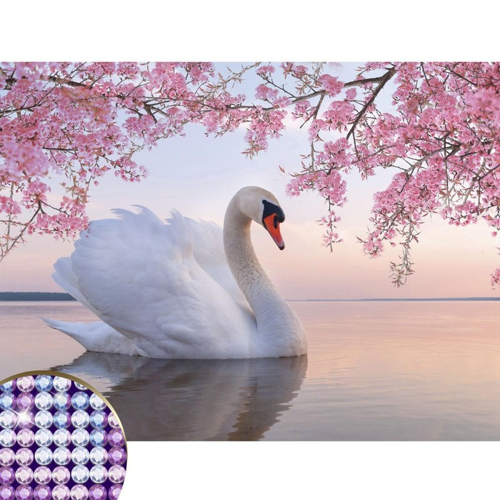 Алмазная мозаика с частичным заполнением на холсте «Белый лебедь», 30 х 40 см