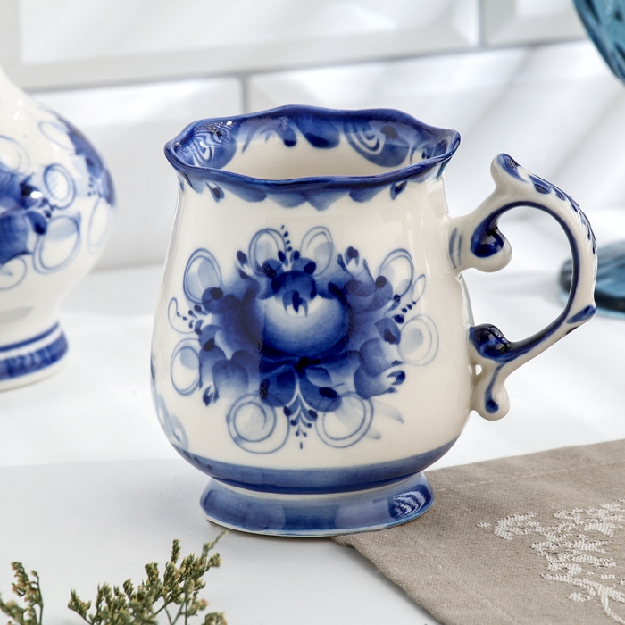 Кружка гжель «Утро», бело-синий,керамика,