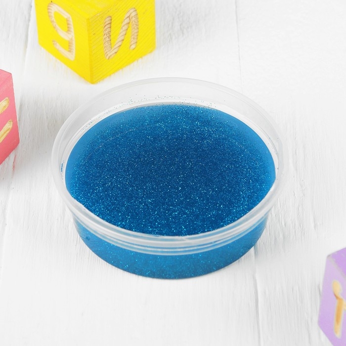 Слайм «Стекло» с ярко-синими блёстками, 90 г