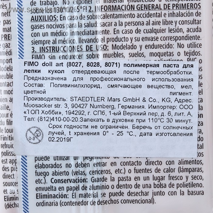 Полимерная глина FIMO Professional подходит для начинающих мастеров и професиональных художников.ОсобенностиМасса мягкая, поэтому вы легко придадите ей нужную форму.Цвета можно смешивать для получения необходимых оттенков, которые сохранятся после обжига.После запекания изделия становятся прочными и долговечными.Упаковка легко открывается без использования ножа. Если вы не полностью израсходовали блок, то остатки можно завернуть в упаковку — так глина лучше сохранится.Термическая обработка. Готовое изделие поместите внутрь духовки на тарелке, стекле или фольге. Запекайте при температуре 110 °С. Чем больше толщина элемента, тем дольше нужно запекать (вплоть до 30 минут). Температура обжига не должна пpeвышaть 130 °С.Пластика рекомендована для детей старше 8 лет.