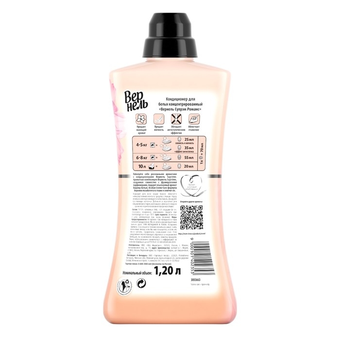 Кондиционер Вернель идеально подходит для регулярного ухода за бельем, благодаря эффективности и простоте использования.