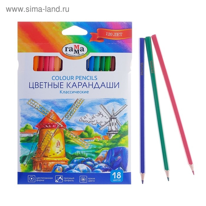 Карандаши 18 цветов «Гамма» «Классические», стержень d=2.6 мм, шестигранные