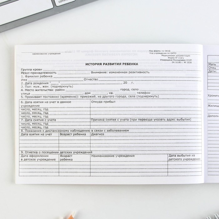 Медицинская карта ребенка Форма №112/у "Голубой коллаж", 80 листов