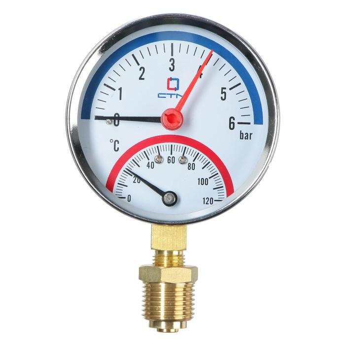 Термоманометр "CTM", радиальный, Дк 80 мм, 0.6 МПа, наружная резьба 1/4", 120°С