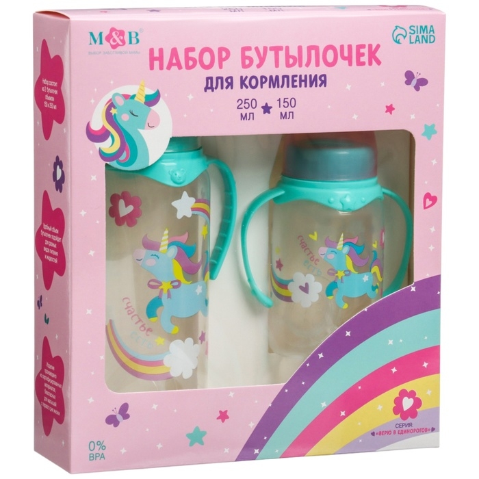 Подарочный детский набор «Волшебная пони»: бутылочки для кормления 150 и 250 мл, прямые, от 0 мес., цвет розовый