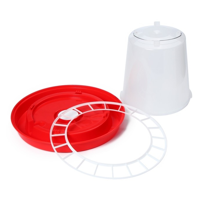 Вакуумная поилка пригодится для поения птицы. Состоит из бачка-конуса и крышки-дна.