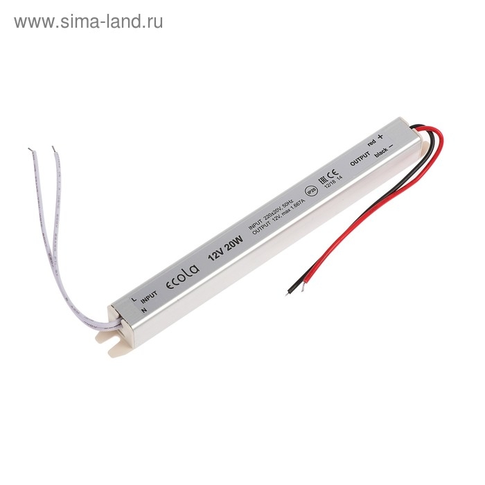 Узкий блок питания Ecola для светодиодной ленты 12 В, 20 Вт, IP20