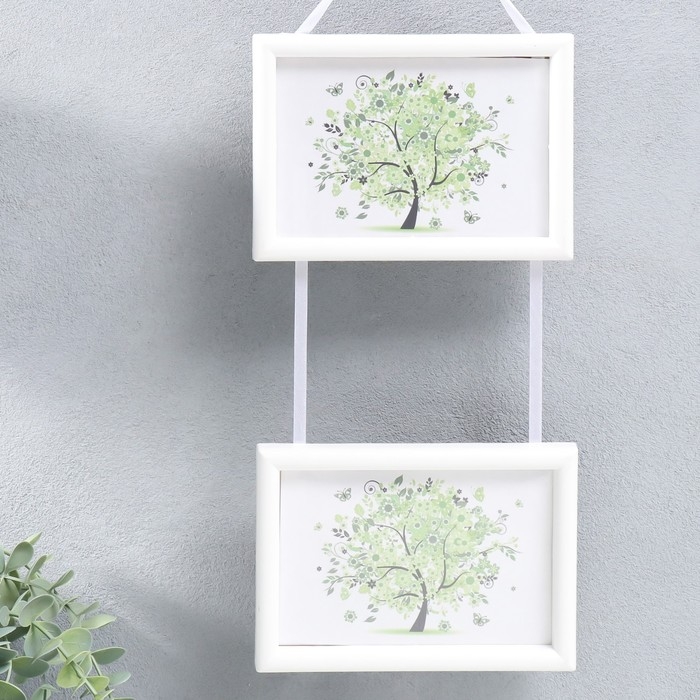 Фоторамка двойная на тесьме L-4 10х15 см белый (пластиковый экран)