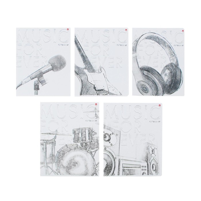 Тетрадь 48 листов в клетку MUSIC. BLACK&WHITE, обложка мелованный картон, пластизоль, блок 70 г/м2, МИКС