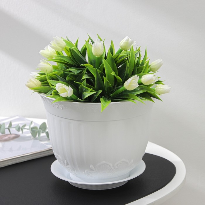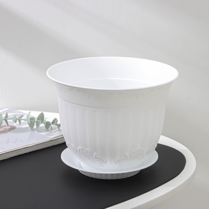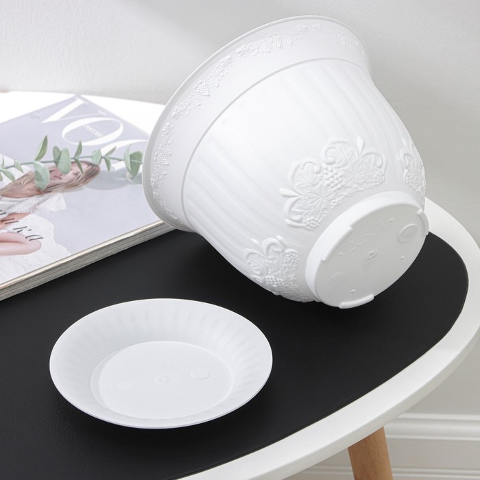 Горшок для цветов с поддоном «Ангара», 2.5 л, пластиковый, белый