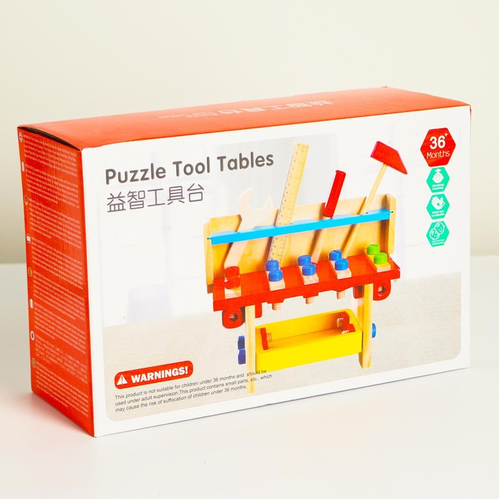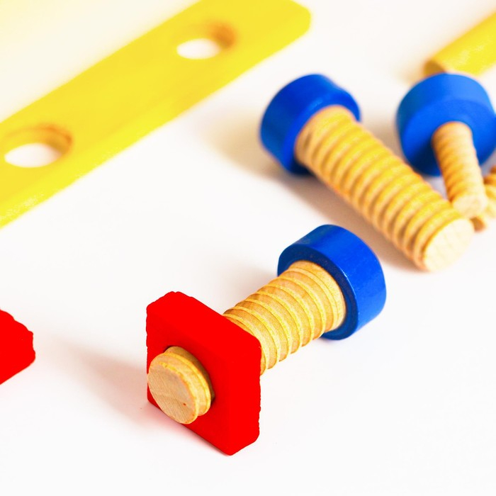 Деревянный конструктор в виде верстака плотника — это первая встреча юного мастера с миром инструментов. Малыш непременно оценит оригинальную игрушку, ведь она такая яркая и приятная на ощупь. Разнообразие деталей приятно удивит ребёнка! В состав набора входит множество предметов, в том числе молоток, гаечный ключ, отвёртка и линейка.