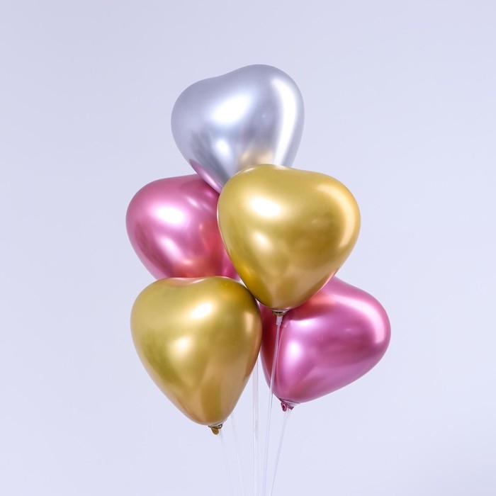 Шар латексный 12" «Сердце», хром, набор 5 шт., МИКС