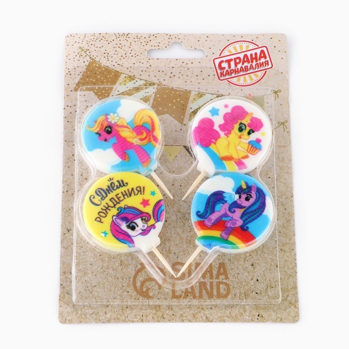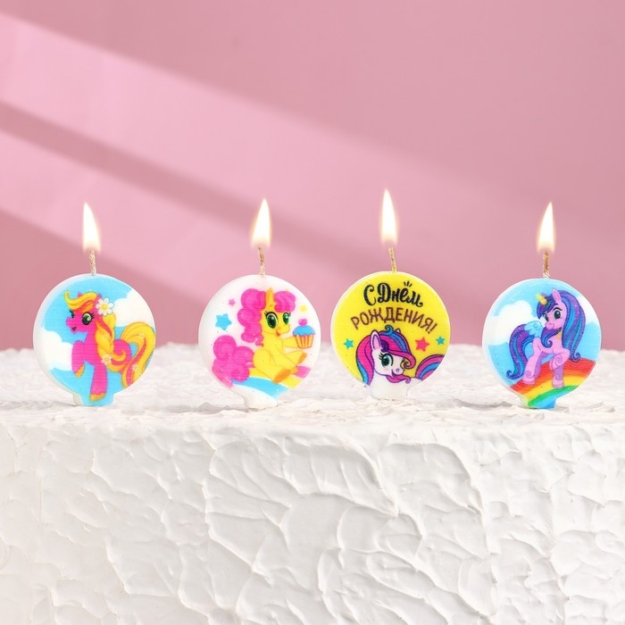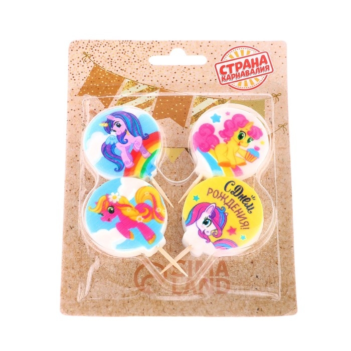 Свечи в торт "Пони", размер 1 свечи 4×4,4см, набор 4 шт
