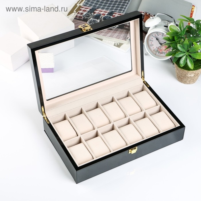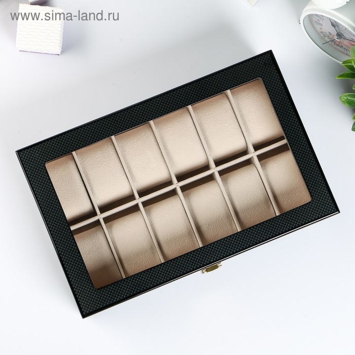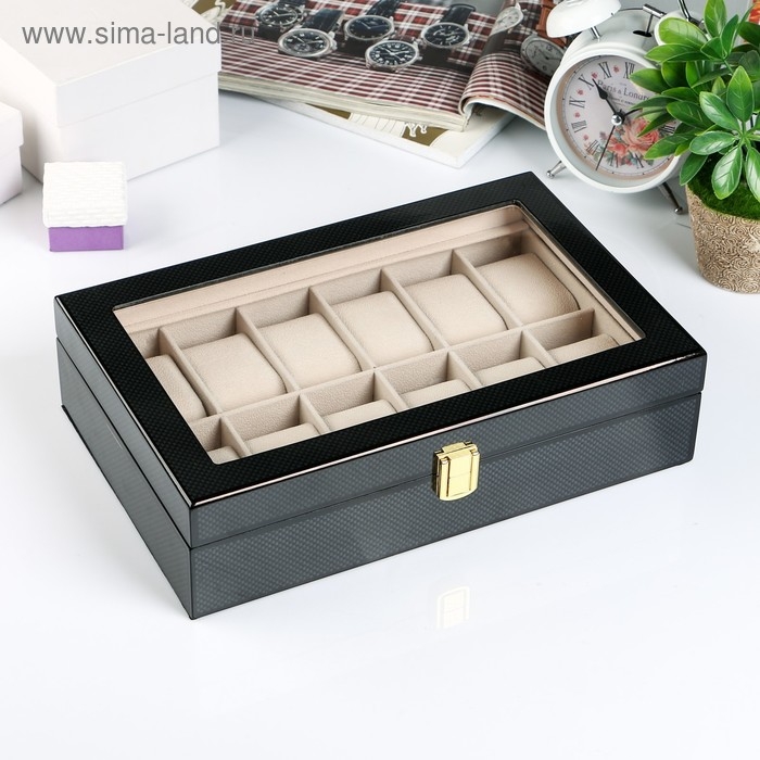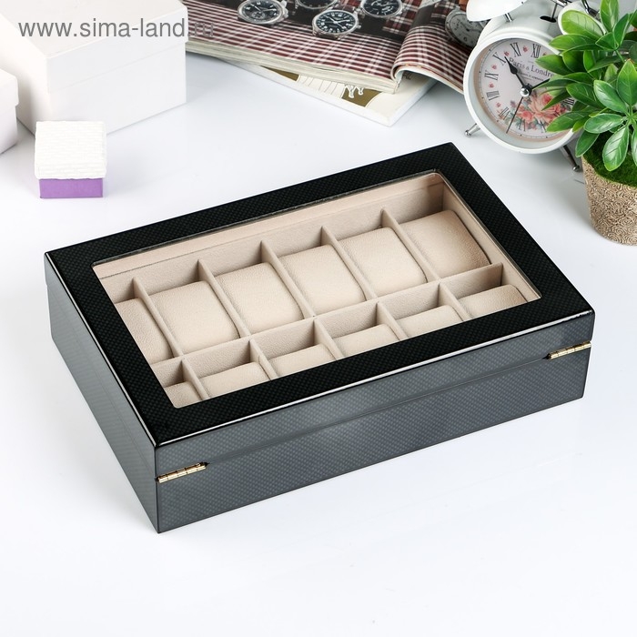 Шкатулка дерево под часы 12 отделений "Карбон" 8х31х20 см