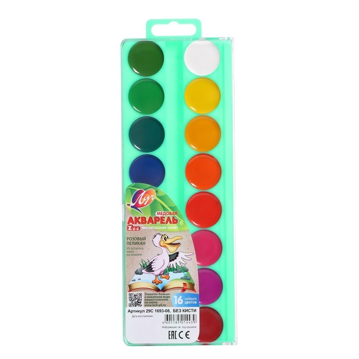 Акварель "Луч" ZOO, 16 цветов, без кисти
