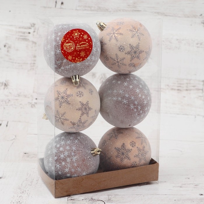 Ёлочные игрушки, шары новогодние , пластик, набор d-8 см, 6 шт "Морозное утро" коричневый