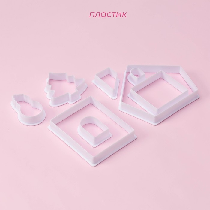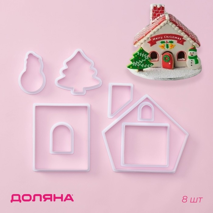 Формы для печенья новогодние Доляна «Пряничный домик», набор 8 предметов, пластик, белые