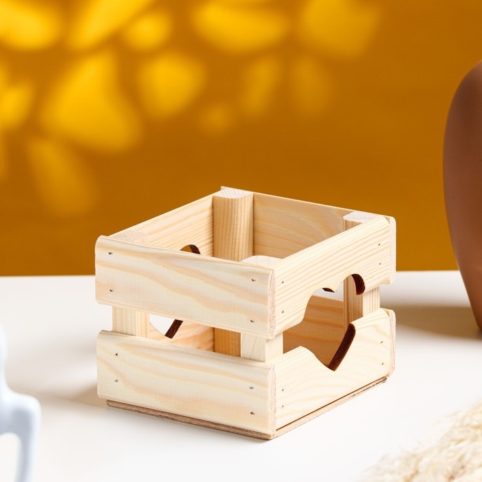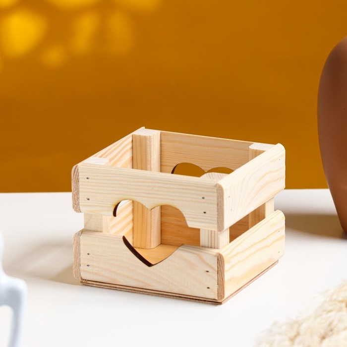 Кашпо деревянное 12×11×9 см "Однушка Лайт", двухреечное, сердце, натуральный Дарим Красиво