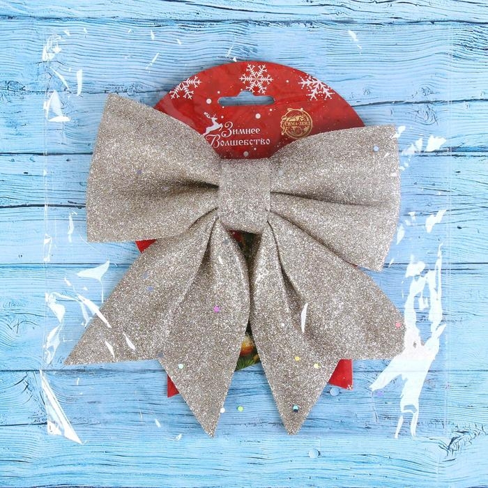 Ёлочная игрушка «Зимнее волшебство. Бант блеск» пластик, 20х18 см, бежевый