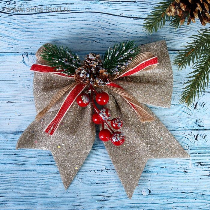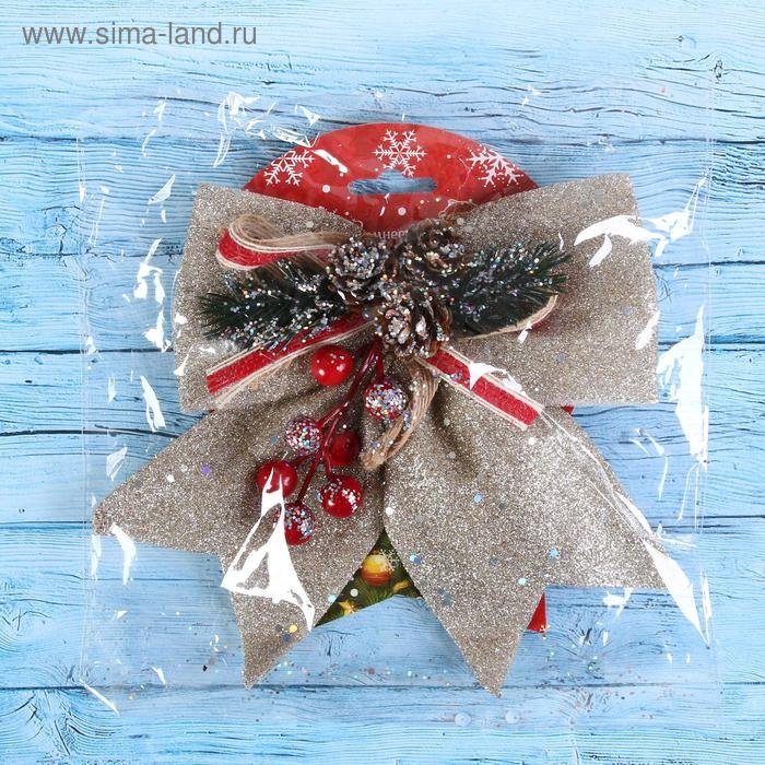 Ёлочная игрушка «Зимнее волшебство. Бант - шишки, ягодки» пластик, 21х18 см, бежевый