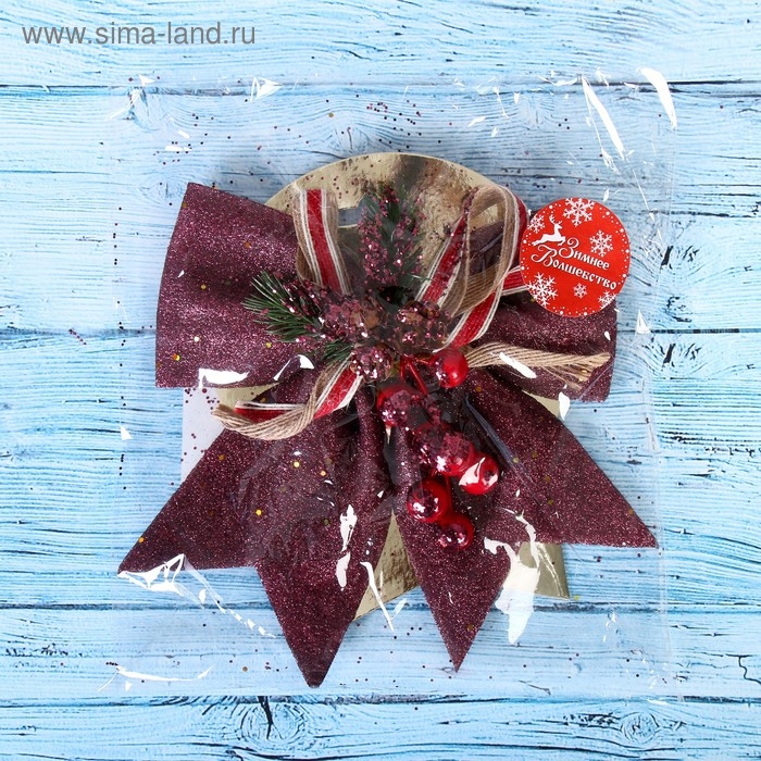Ёлочная игрушка «Зимнее волшебство. Бант - шишки, ягодки» пластик, 21х18 см, бордовый