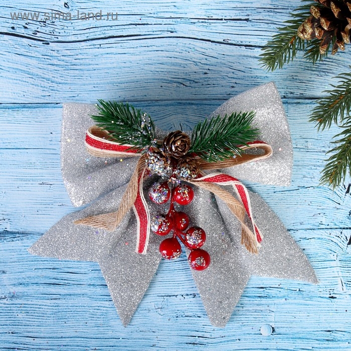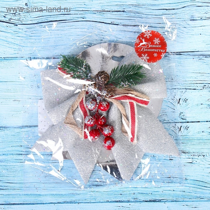 Ёлочная игрушка «Зимнее волшебство. Бант - шишки, ягодки» пластик, 21х18 см, серебро