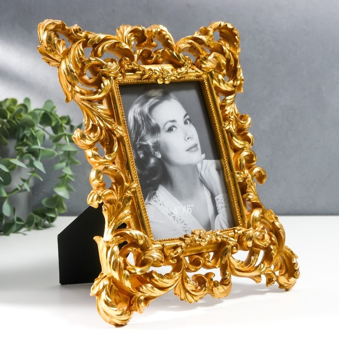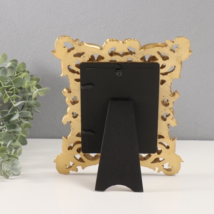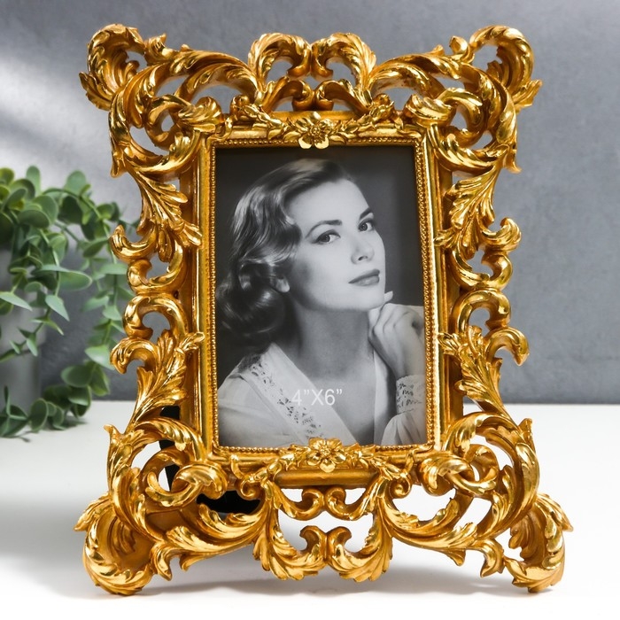 Фоторамка полистоун 10х15 см "Пышные листья и незабудки" золото 26,5х21,5 см