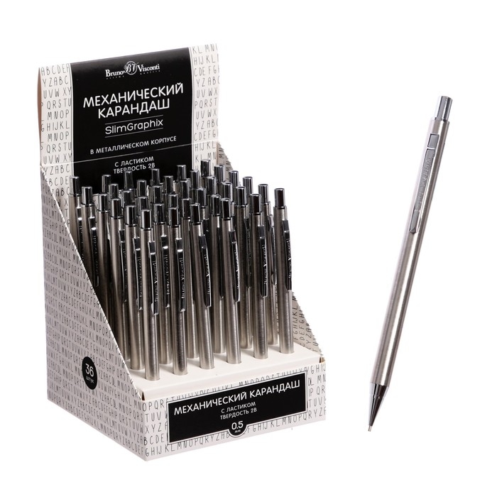 Карандаш механический 0,5 мм SlimGraphix, 2В, металлический корпус, с ластиком