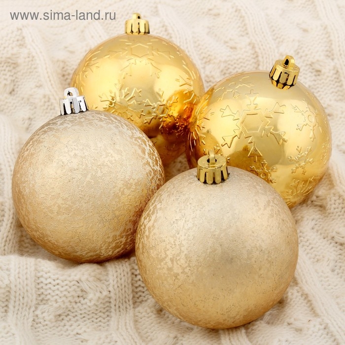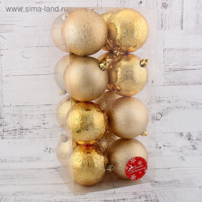 Ёлочные игрушки, шары новогодние , пластик, набор d-8 см, 16 шт "Праздничные огоньки - кракелюр" золото