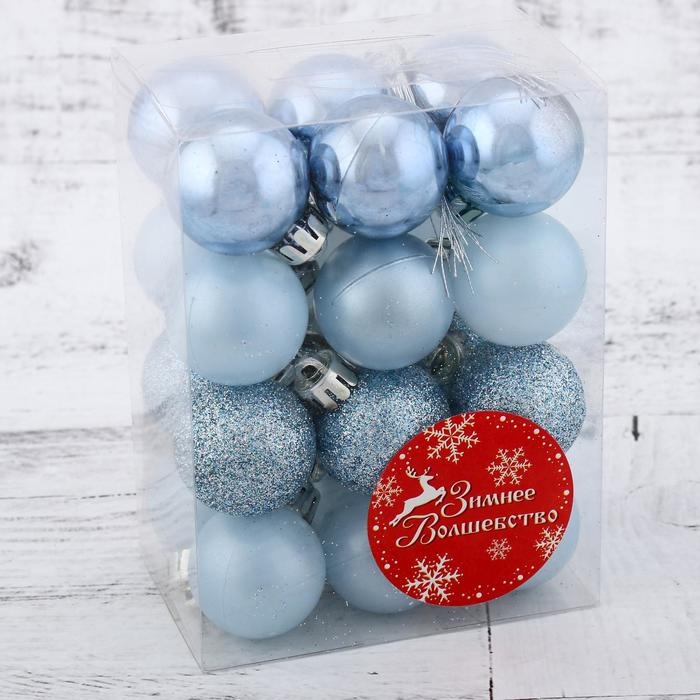 Ёлочные игрушки, шары новогодние , пластик, набор d-3 см, 24 шт "Камея" голубой