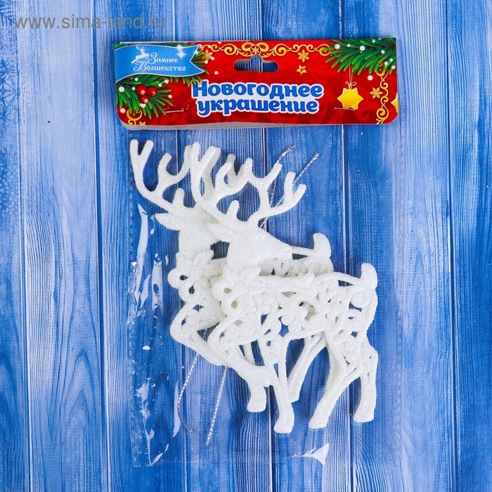 Ёлочные игрушки 2 шт. «Зимнее волшебство. Грациозный олень» пластик, 9х12 см, белый