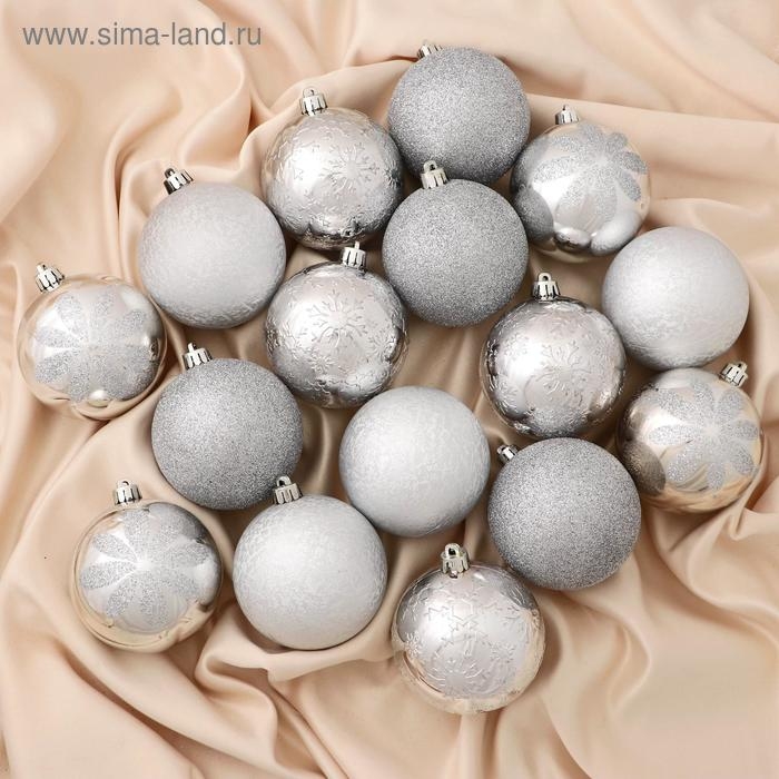 Ёлочные игрушки, шары новогодние , пластик, набор d-8 см, 16 шт "Зимний шик" серебро